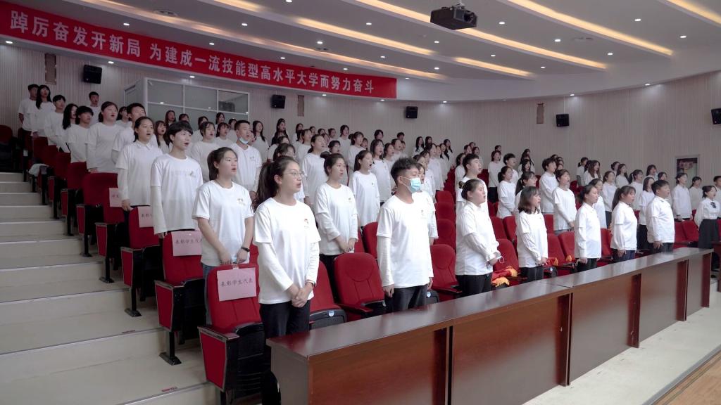我校各级团组织举行入团仪式,入团仪式上,新团员佩戴着闪亮的团徽,面对鲜艳的团旗,举起右手庄严宣誓,以自己最洪亮的声音宣读入团誓词,展现了作为中国共产主义青年团一员的光荣感和责任感,增强了团员青年的使命感和团组织的凝聚力、向心力。