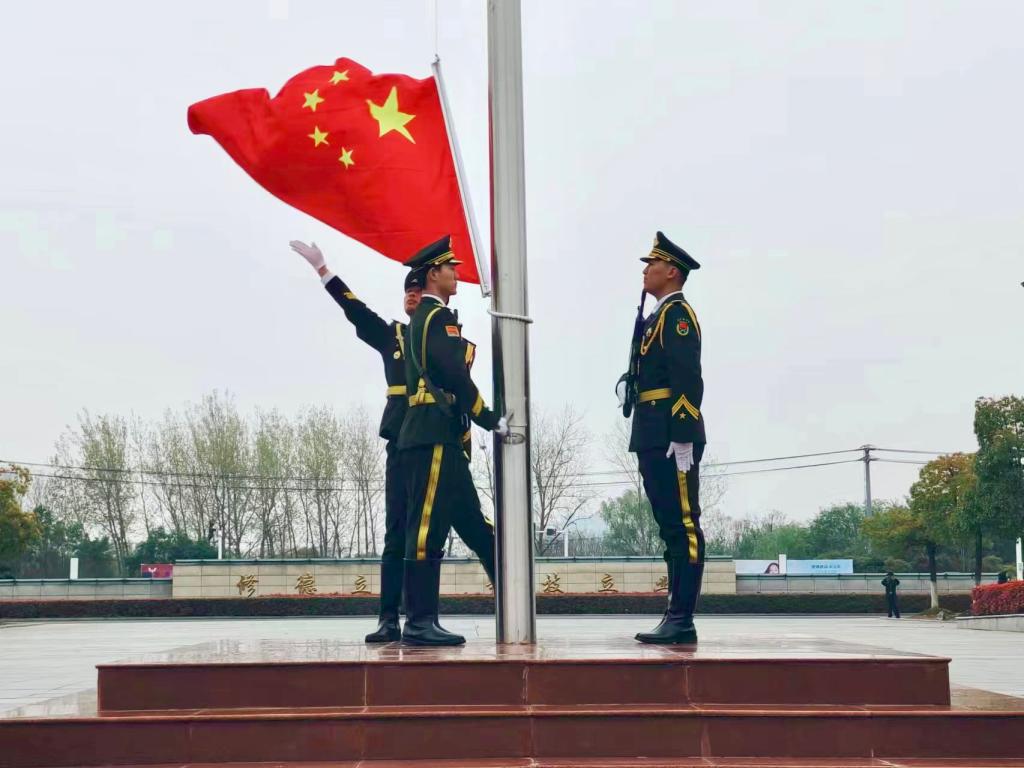 7时30分,升旗仪式正式开始。国旗护卫队迈着整齐划一、铿锵有力的步伐,护送着国旗走向升旗台。全体师生面向国旗肃立致礼,凝眸注视,共唱国歌,五星红旗冉冉升起,在熠熠晨光中迎风飘扬。