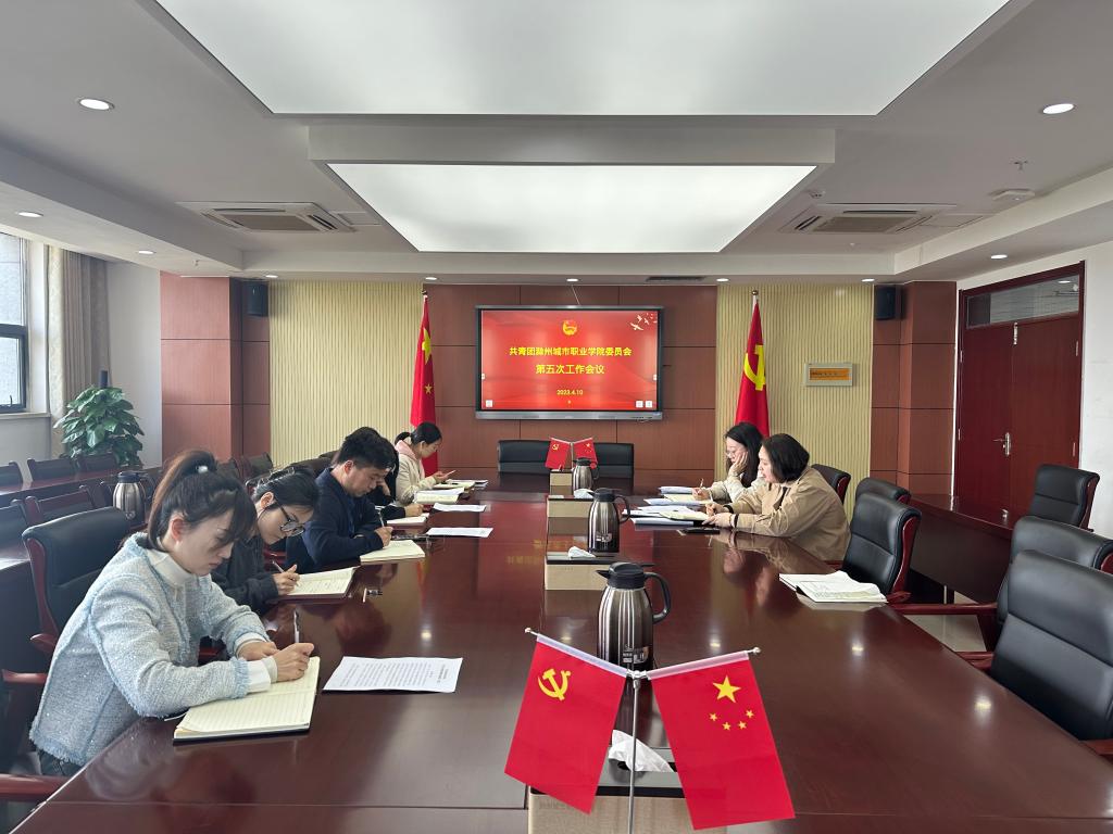 4月10 日上午,滁州城市职业学院共青团第五次工作会议在第四会议室召开。团委全体成员及各二级学院团总支书记参会,会议由校团委书记陈婷婷主持。