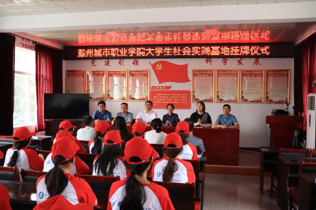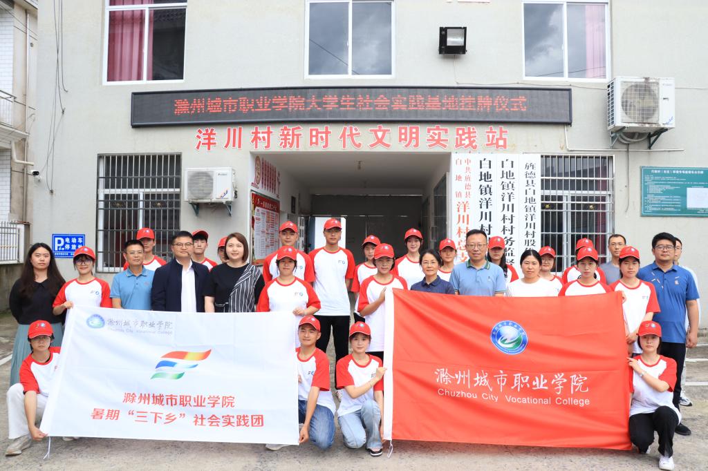 a为进一步贯彻学习党的二十大精神,促进青年大学生深入基层开展社会实践,助力乡村振兴,2023年6月27日上午,滁州城市职业学院一行赴旌德县白地镇举行大学生社会实践基地授牌。出席本次活动的领导嘉宾有护理学院党总支书记蔡季秋、旌德团县委书记张旭涛、校团委书记陈婷婷、白地镇党委副书记李明星、旌德县政府相关部门负责同志、滁州城市职业学院赴旌德县三下乡社会实践团师生,会议由张旭涛主持。