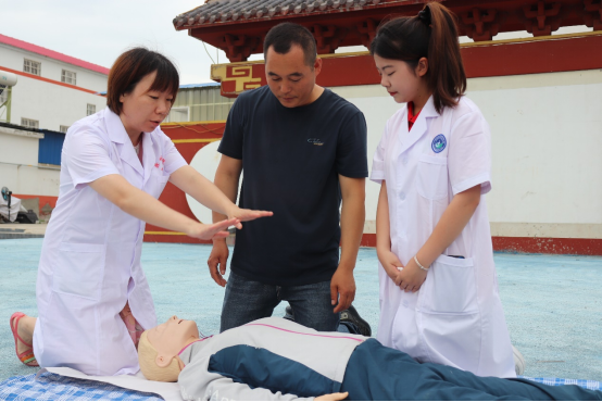 其中,海姆立克法重点教学。金庄村儿童人数较多,在日常生活方面(如吃饭、玩玩具)难免会遇到气管异物阻塞,在老年人方面,咀嚼时会因为牙齿问题而不能充分的咀嚼食物,也会导致异物阻塞的发生。这时,海姆立克法的作用是巨大的。
