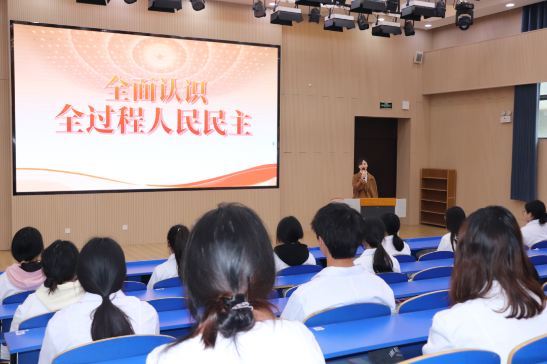 我校积极组织思政委员队伍深入到各学院团支部,开展以“全过程人民民主”为主题的团课宣讲活动。在这次宣讲活动中,思政委员们不仅深入浅出地解读了“全过程人民民主”的内涵和实践路径,还结合当前社会发展的实际情况,分析了青年学生在其中可以发挥的积极作用。通过生动的案例和贴近青年生活的语言,使得这一政治理论不再是抽象的概念,而是转化为学生们能够理解和接受的实际行动指南。在宣讲过程中,思政委员们采用了互动式教学方法,鼓励学生提问和讨论,使宣讲活动成为一场思想的盛宴,而非单向的灌输,引导广大团员青年统一思想、凝聚力量。