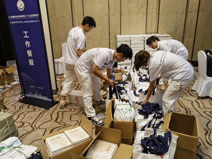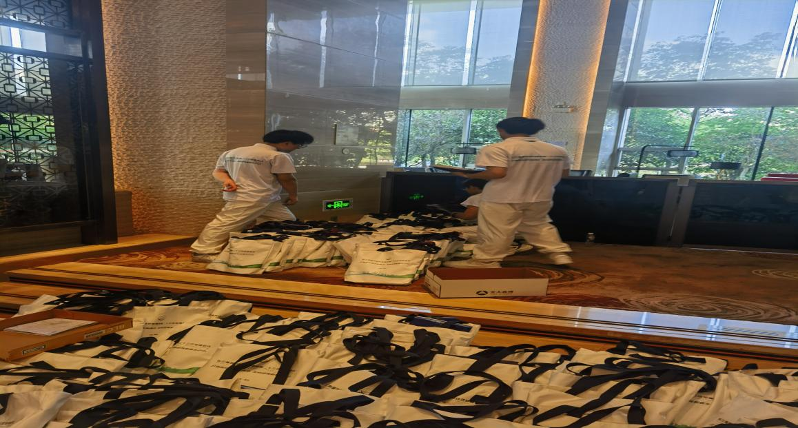 9月17日我校志愿者进行资料装袋、伴手礼装盒、熟悉场地等工作。