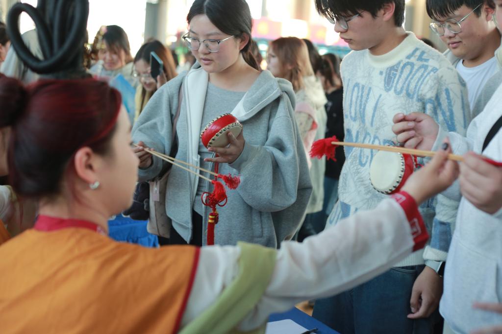 展演结束后,各社团各展其能,在招新摊位前与同学们热情互动。清韵茶艺社社员现场煮茶敬茶,邀请师生品鉴香茗,讲解茶文化知识;舞蹈社团发起“随机舞蹈”挑战,引得众人驻足……游园会现场还设置了集章打卡、趣味竞答、投壶游戏,现场人头攒动,气氛热烈。