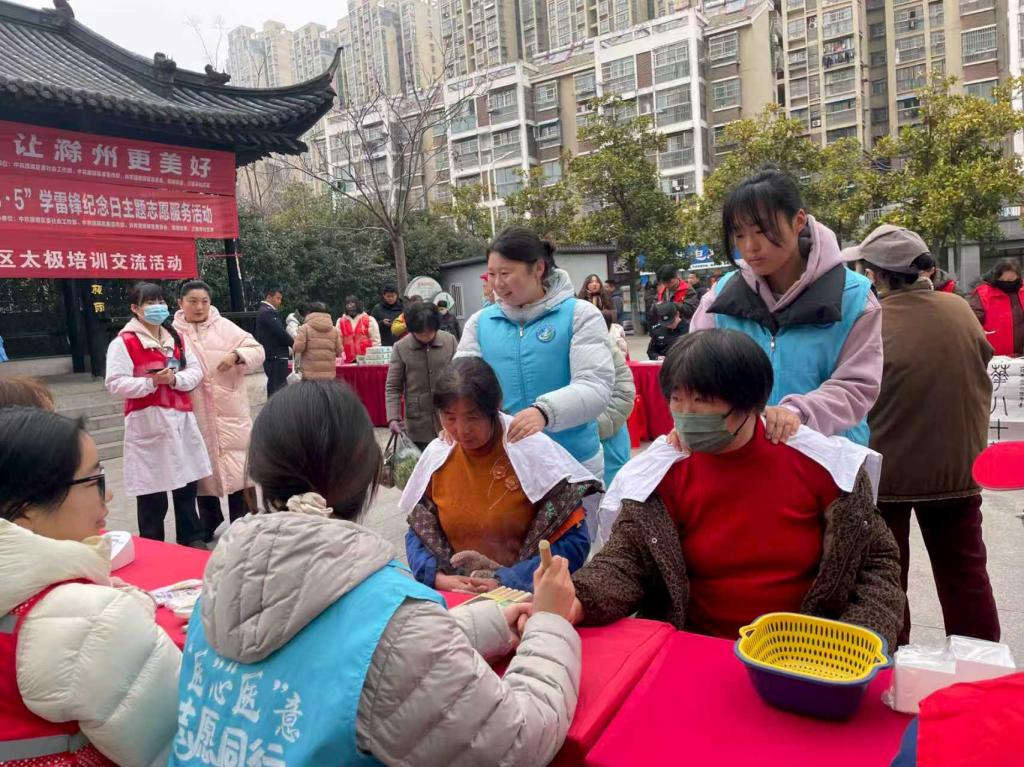 在第63个“3·5”学雷锋纪念日到来之际,滁州城市职业学院积极响应市委社会工作部、市委宣传部、团市委、市志愿服务联合会“学雷锋 做志愿 共同奋进‘十五五’;滁州有让 志愿同行 让滁州更美好”主题活动号召,走进滁州龙池社区、三里亭社区、鼓楼社区、创业北路社区,开展义诊、艾灸志愿服务。