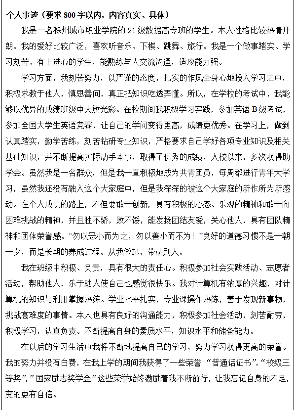 同意推荐滁州城市职业学院管理与信息学院大数据技术专业闫柳同学申报 2022 年度“交通银行残疾大学生励志奖”;