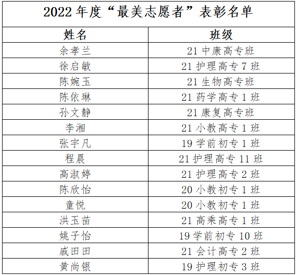 2022 年以来,在学校党委的正确领导下,全校各级团组织扎实推进团的各项工作,广大青年志愿者积极投身于学校建设、安徽省第十五届运动会等志愿服务活动,涌现出一批先进典型。为进一步激励全校广大青年志愿者继续发扬“奉献、友爱、互助、进步”的志愿精神,弘扬青春正能量,扎实工作,开拓创新,不断推进我校工作的新发展,校团委经过审核决定:拟评选余孝兰等15名同学“最美志愿者”称号,现将拟评选结果公示如下: