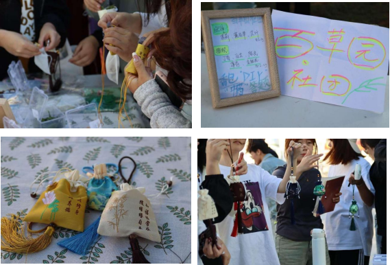 百草园社团通过和同学互动游戏的方式向大家科普中医药知识。共分为两个游戏,第一个游戏猜中药谜底,第二游戏是看图猜中药。答对的同学可以Diy一个中药香包。百草园社团提供了多种药材供大家Diy,有金银花、艾草、白芷等,大家可以根据这些药材制作安神香包或者驱蚊香包。本次社团文化节活动让我们了解到中医药文化深受大学生的喜爱,同时也丰富了我们的大学生活,提供了一个培养兴趣爱好的机会,在提高自己的同时,扩大社交范围,了解中医药知识,弘扬中华民族传统文化。