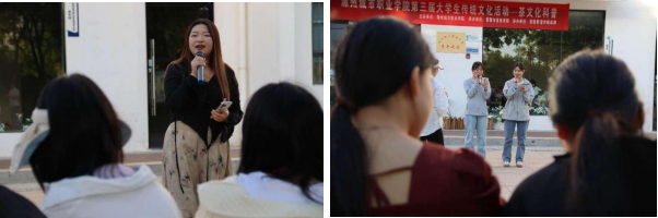 杨东升同学为我们弹唱歌曲《不能说的秘密》,吉禹州同学和唐筱同学分别演唱《动物世界》和《最长的电影》,最后闫可欣同学和闫梦雪同学合唱一首《一笑倾城》更是把大学生的青春活力展现得淋漓尽致。吉他表演的功底和他们认真的演唱,体现了他们对这次文化节的重视,也展现了大学生活和学校社团活动的多姿多彩。