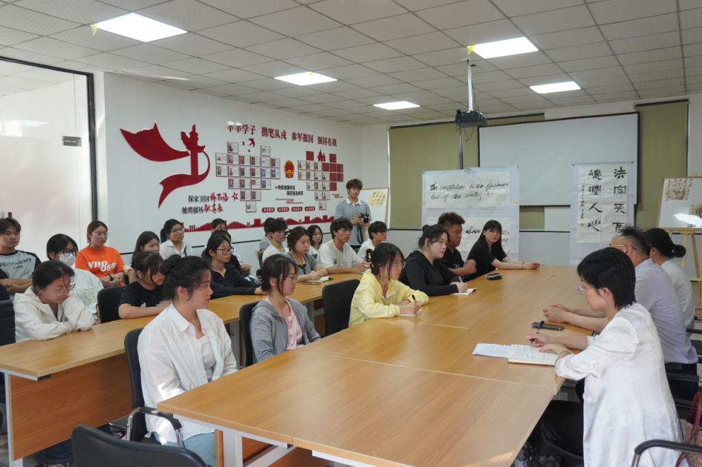 6月5日下午,一场“书法+法治”特色融合课堂在月朵驿站温情开讲。校党委委员、副校长曹士东以独特的教学视角,为青年法学社成员们带来一堂新意盎然的法学课——将传统书法艺术与现代法治知识深度交融,为抽象的法理知识注入文化温度。