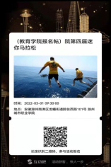 2、活动参与者不能出现穿拖鞋等影响活动进行的服装,建议穿运动鞋,运动裤;