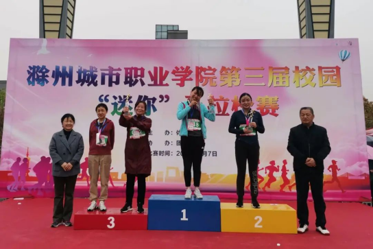 本次比赛分5公里竞速和徒步两个各组别,500名师生共同参加了本次比赛。参赛运动员顽强拼搏,最终决出各组名次,其中,学生男子组前三名:张旭震、马志文、张孝坤;学生女子组:鲍朝霞、朱伶红、张明月;教工男子组前三名:刘文峰、李毅、张善杰;教工女子组前三名:王婷、张蓓蓓、吴惠珍。