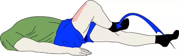 操作:弯曲你受伤的膝盖,尽量使你的脚跟尽可能接近你的屁股。保持膝盖在这个位置5到10秒,然后去开始位置,放松。