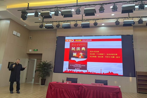 宣讲中,曹士东副校长首先厘清了民法与民法典的核心区别,强调民法典作为"社会生活的百科全书"和"人民权利的宣言书",是新中国第一部以法典命名的法律,于2021年1月1日起正式施行,其颁布实施标志着我国民事立法进入系统化、体系化时代。他从法律地位、调整对象、基本原则等基础概念切入,指出民法典作为仅次于宪法的基本法,不仅规范了平等主体的人身关系与财产关系,更从自然人、法人、国家治理三个层面构建了完整的权利保障体系,彰显了"以人民为中心"的立法理念。