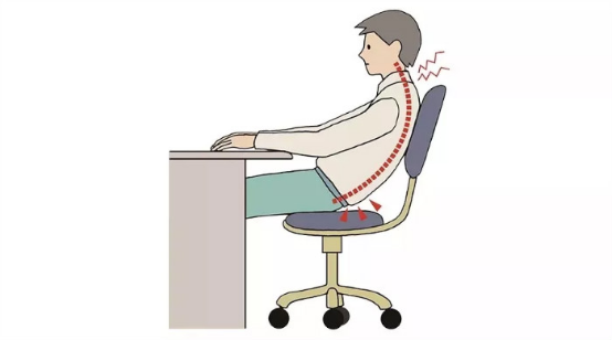 2.调整坐姿,胜于一切:长时间低头容易导致颈椎生理曲度反张(反向弯曲),所以,一个正确的姿势非常重要。最好能将桌椅高度作适当调移,前臂应与桌面平衡,并坐近桌子,让颈背保持挺直,坐姿时可头部略微向前倾斜,保持头部、颈部、胸部的正常生理曲线,避免缩起肩膀和颈椎。持续看电脑手机或连续低头工作超过1小时,需适当放松,活动颈部,起身行走片刻,以消除颈部的肌肉、韧带的过度劳损。