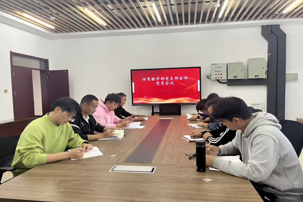 10月9日下午3点,体育教学部党支部在体育馆二楼会议室开展主题党日学习活动,由党支部书记马肖义主持,全体党员参加。