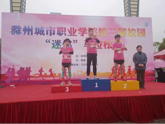 本次比赛分5公里竞速和徒步两个各组别,500名师生共同参加了本次比赛。参赛运动员顽强拼搏,最终决出各组名次,其中,学生男子组前三名:张旭震、马志文、张孝坤;学生女子组:鲍朝霞、朱伶红、张明月;教工男子组前三名:刘文峰、李毅、张善杰;教工女子组前三名:王婷、张蓓蓓、吴惠珍。