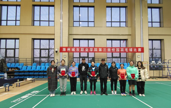 根据学院第十二届科技文化艺术节系列活动安排,由体育部承办、院团委协办的滁州城市职业学院第三届校园羽毛球比赛于12月13日圆满在学院体育馆圆满结束。体育教学部副主任许恒正等老师为获奖运动员颁奖。