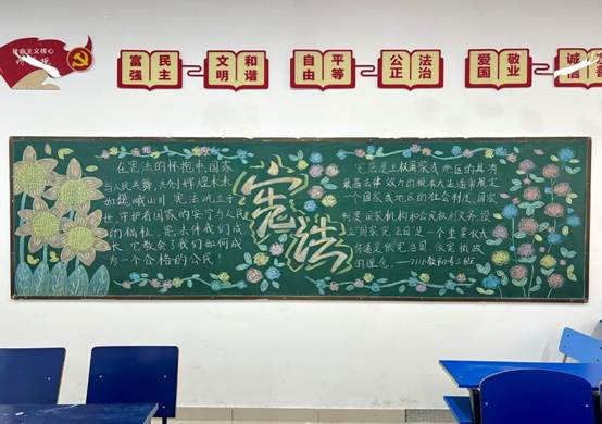 直播结束后,各班级辅导员随即组织开展了“学法知法守法,争做时代新人”主题班会,班会围绕宪法与日常生活的联系、大学生的权利与义务等内容展开深入讨论与分享,同学们踊跃发言,结合自身经历畅谈对法治精神的理解。班会后各班还积极行动起来,精心策划并绘制了以宪法为主题的教室黑板报,一幅幅图文并茂、内容丰富的板报,成为班级里一道亮丽的法治文化风景线。