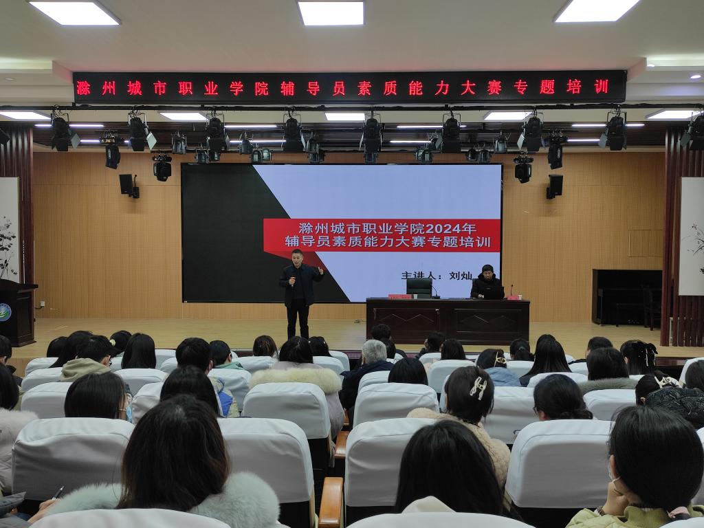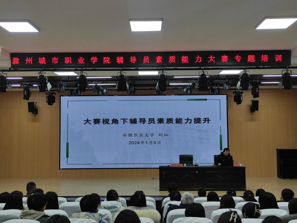 为提升和加强我校辅导员队伍专业化、职业化能力建设,提高辅导员综合素质,引导全体辅导员明责任、重担当,1月5日下午,我校邀请了安徽农业大学马克思主义学院学工组组长、往届辅导员素质能力大赛省赛特等奖获得者刘灿来校作专题培训。各教学院党总支副书记、全体辅导员(班主任)、学生处相关人员参加了此次培训,培训会由党委委员、学生处处长杨如江主持。