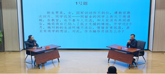 案例研讨,主要考察辅导员综合运用理论分析问题、研判问题、解决问题的能力。选手在赛前抽取AB角签位,赛前10分钟分别抽取1道案例。比赛以“我提问,你回答”的方式开展,由AB选手围绕案例共同辨析原因、研讨对策、总结规律。7组选手既是对手、又是辩手,围绕学业发展辅导、职业生涯规划、评奖评优机制、心理问题疏导等主题,选手们以饱满的精神状态和流畅的语言表达,在案例研讨环节剖析问题本质,探求解决思路,提出实施办法,彰显育人理念,充分展示了我校辅导员扎实的职业功底。