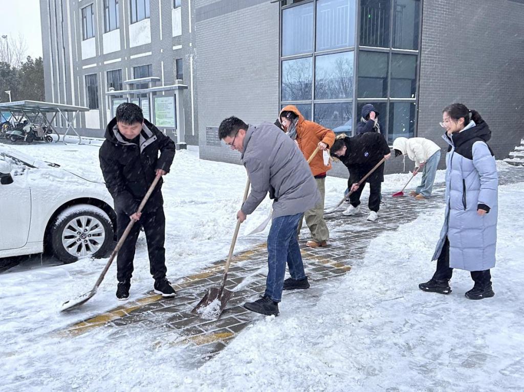 教育学院:党员先锋在行动 清雪除冰暖师生 教育学院学生党支部开展清雪除冰活动