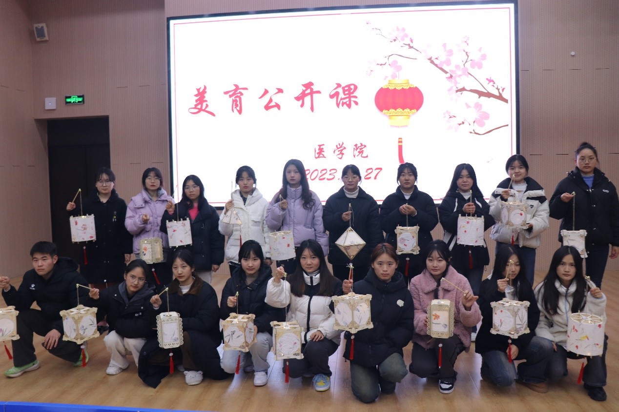 为扩展中国传统文化的内涵,丰富大学生的精神生活,12月27日,医学院团总支在医学院报告厅开展了第八期美育公开课活动。本期主题为“传承民俗”灯笼制作。活动伊始,23检验高专2班的郑欣然通过互动的形式向同学们介绍了相关习俗及灯笼的历史起源。随后,郑欣然一边细致地演示灯笼的制作步骤,一边耐心地为同学们做指导。搭灯笼框架,贴花草宣纸,挂玉佩流苏…大家时不时的交流着制作要点,相互帮助。在一片欢乐祥和的气氛中,一...