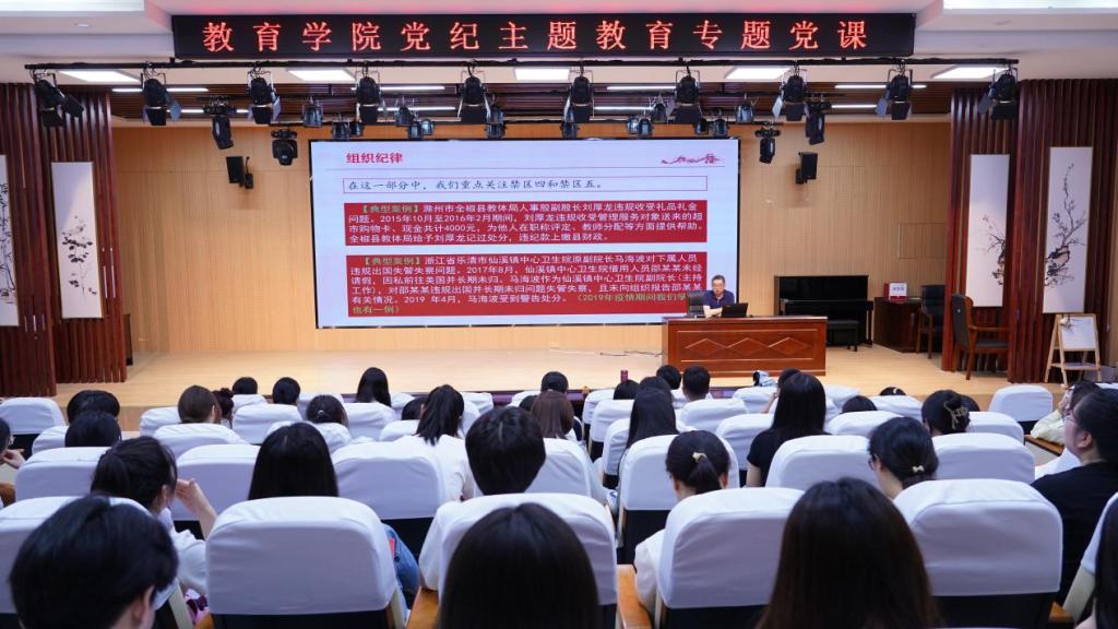 为推进党纪学习教育走深走实,增强学院师生的纪律规矩意识,6月5日下午,校党委委员、教育学院党总支书记高国柱在教育学院报告厅作题为《牢记党规党纪争做合格党员》的专题党课,教育学院120余名入党积极分子及党员教师参加。高国柱结合党纪学习教育要求,围绕《中国共产党纪律处分条例》的修订背景及特点,政治纪律、组织纪律、廉洁纪律、群众纪律、工作纪律、生活纪律等6大纪律修改亮点共36个禁区等方面展开,并结合案例分析...