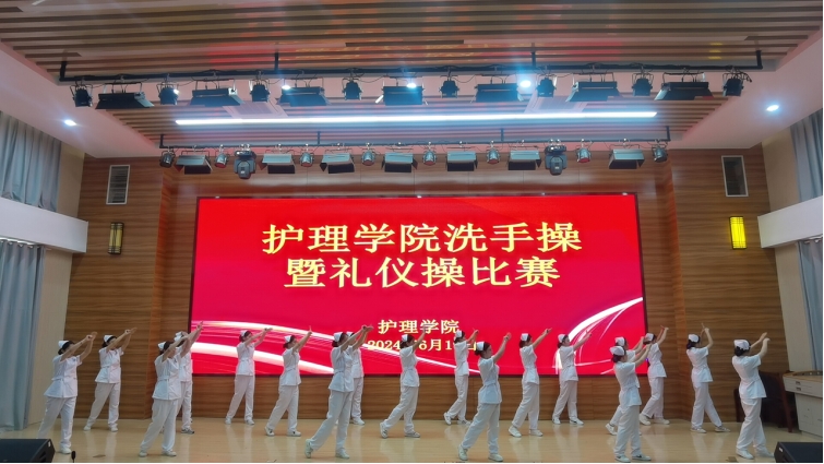 为进一步提升护理专业学生的职业素养和实践能力,丰富校园文化生活,6月19日,护理学院举办了洗手操暨礼仪操比赛。来自不同2023级护理专业学生组成23支代表队,经过为期一个月的学习和训练,以饱满的热情投入到比赛中。赛场上,同学们身着整洁的护士服,以整齐划一的步伐、洪亮的口号、标准的动作,充分展示了护生们积极向上的精神风貌和专业素养。洗手操比赛中,同学们严格按照七步洗手法的步骤进行,每一步都细致入微,确保双...