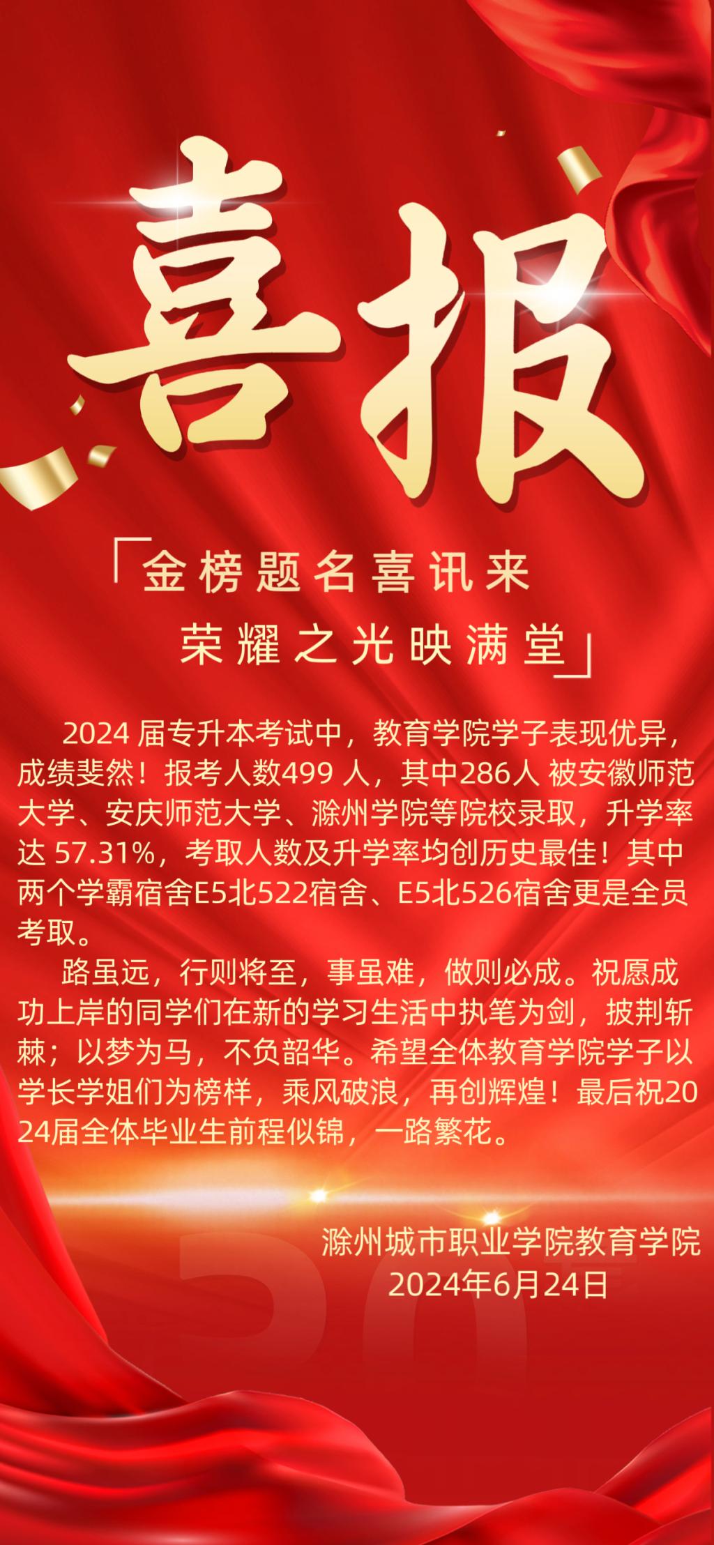 教育学院:喜报!我院2024届毕业生“专升本”喜获佳绩