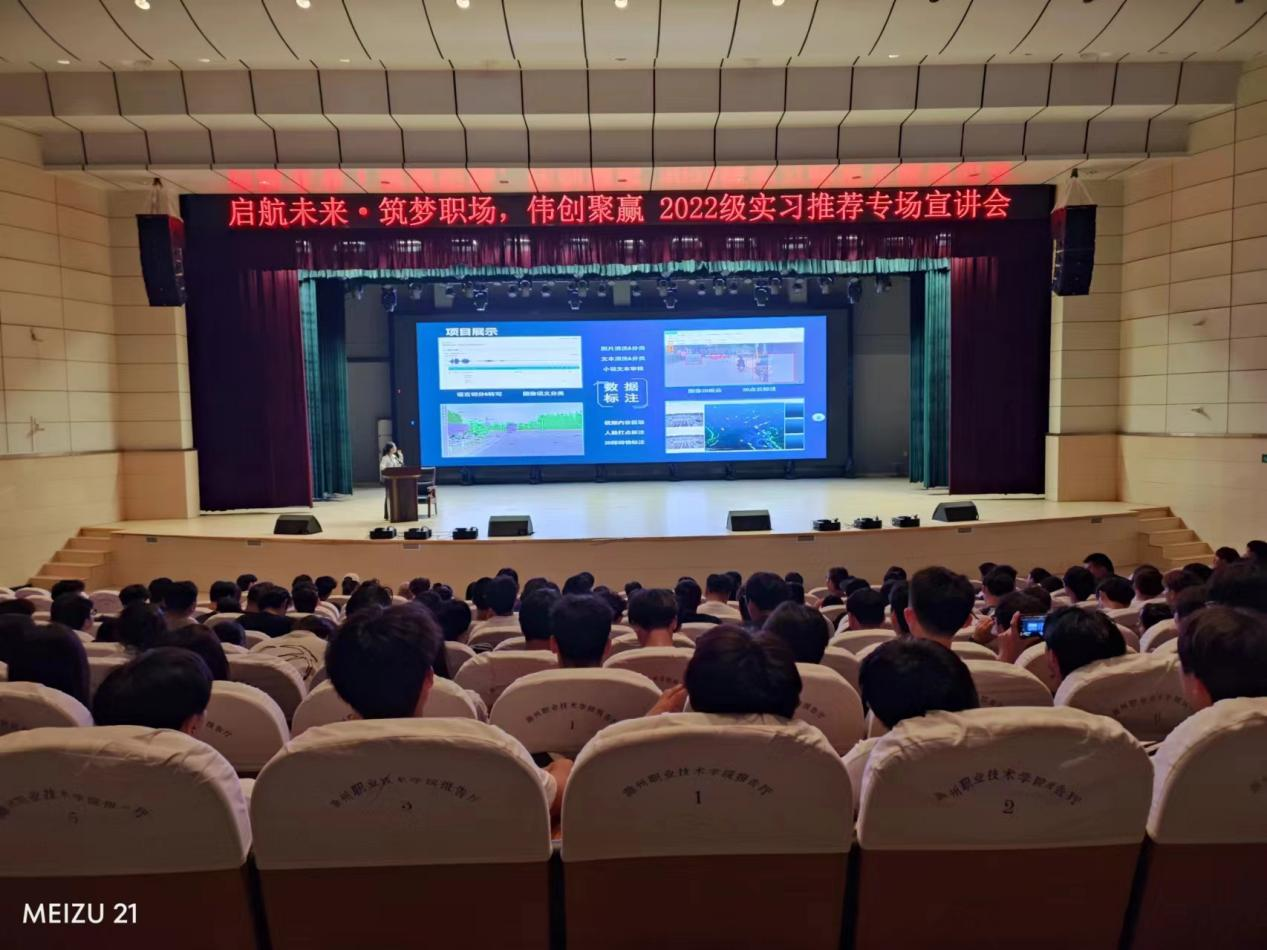6月24日,一场旨在启迪未来、筑基职场的2022级实习推荐宣讲会在管理学院润德楼四楼报告厅成功举办,标志着学生职业旅程的新起点。本次实习推荐宣讲活动由学院和校企合作单位武汉伟创聚赢科技有限公司精心策划组织,汇聚了来自各滁州本地的10余家行业知名企业,共同为即将步入社会进行实习的22级人工智能、大数据技术专业学子们带来一场关于职业规划、行业发展的盛宴。会上,各家企业代表纷纷上台,通过精心准备的PPT和生动的案...