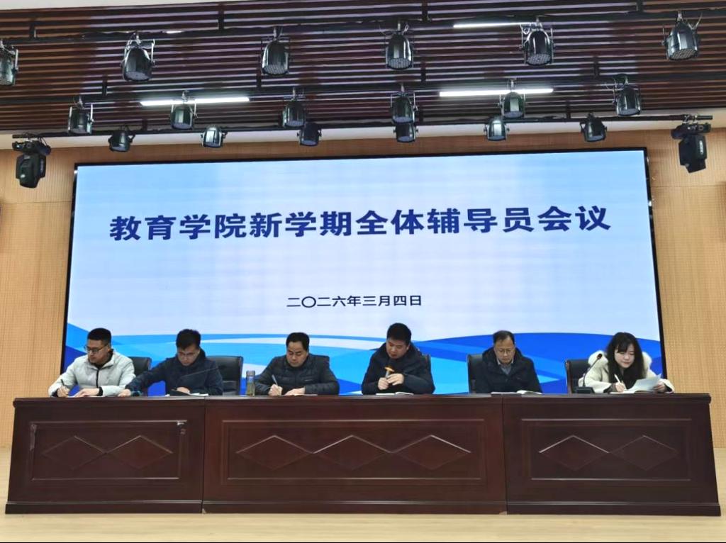 春意萌动,万物复苏,正是深耕细作、蓄力前行的好时节。为统筹部署新学期学生工作,明确工作方向,压实育人责任,确保新学期学生工作开好局起好步,3月4日,教育学院在学院报告厅召开2026年春季新学期全体辅导员会议。教育学院党总支书记刘亮、党总支副书记陈立超、团总支书记黄正顺、学管钟久海及全体辅导员参会。会议由陈立超主持。会上,陈立超首先强调了本次会议的重要意义。他要求全体辅导员要迅速收心归位,调整到“满格...
