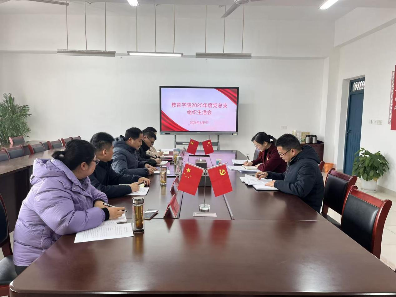 为深入学习贯彻习近平新时代中国特色社会主义思想,严肃党内政治生活,加强党总支班子建设。3月9日上午,教育学院党总支在行知楼2202党员活动室召开2025年度组织生活会。校党委委员、组织人事处处长杨莹,纪检办工作人员李有余到场指导,会议由教育学院党总支书记刘亮主持,党总支全体班子成员参加。会上,刘亮同志代表党总支作班子对照检查,紧密结合学院工作实际,围绕七个方面重点内容,对照落实意识形态责任制、党风廉政“...