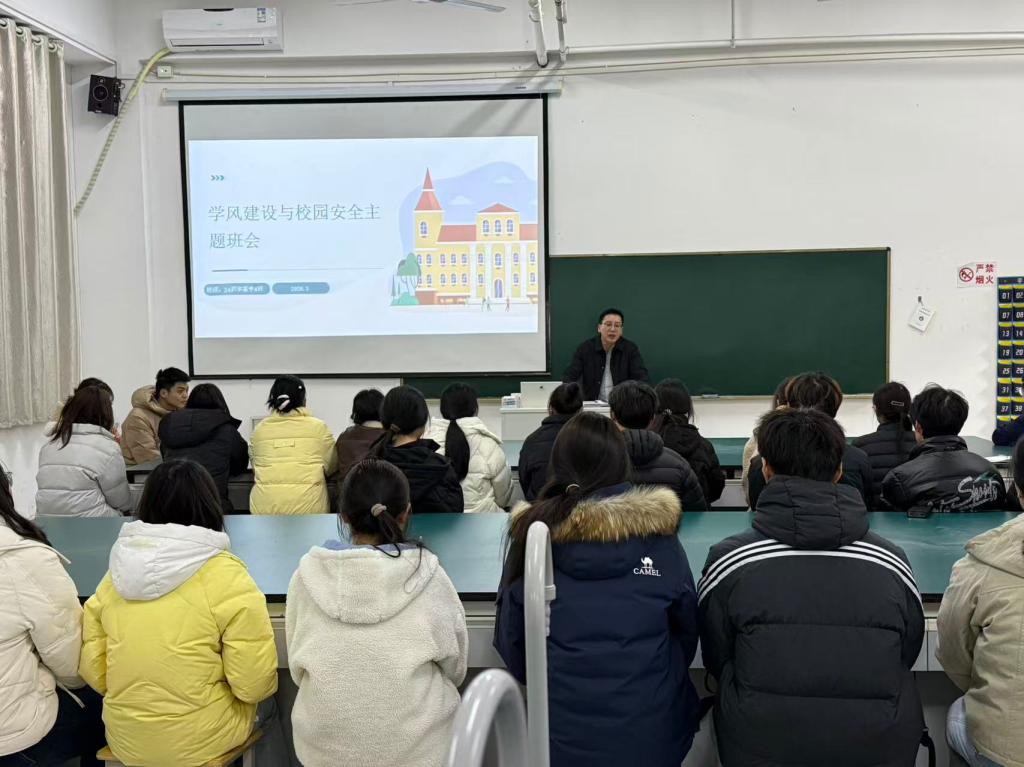 新学期开学首日,为及时掌握学生返校思想动态,确保各项工作开好头、起好步,当晚,各班级在辅导员组织下,集中召开学风建设与校园安全主题班会,聚焦学风安全汲取航天精神,为学生上了一堂生动的“开学第一课”。班会上,辅导员首先围绕学风建设提出具体要求,强调新学期要继续全方位深入贯彻“学风建设六项硬举措”,端正学习态度、严明课堂纪律,鼓励学生以饱满状态投入学习;同时结合校园实际案例,开展防诈骗、宿舍用电安...