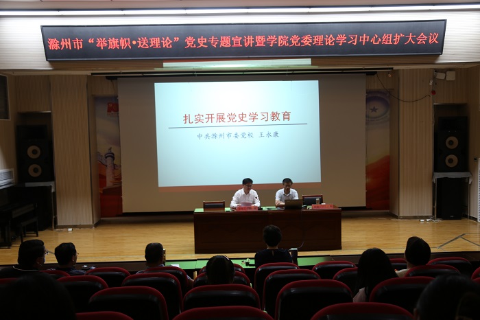 为了进一步推动党史学习教育深入开展,按照滁州市委党史学习教育工作统一安排和部署,6月4日下午,滁州市“举旗帜﹒送理论”党史专题宣讲在图文中心报告厅举办,宣讲由滁州市委党校副校长王永康主讲,院领导班子成员,各部门负责人,各党总支、支部书记,各团支部书记等近200人参加宣讲报告。宣讲由党委委员、办公室主任、宣传统战部部长陈通主持。王永康从深刻领会习近平总书记重要论述,充分认识“四史”学习的重大意义、认真...