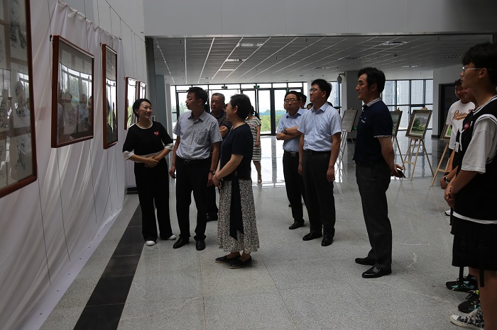 为了充分展现中国共产党的丰功伟绩,深切表达学院广大师生爱党之情,6月25日上午,学院庆祝中国共产党成立100周年师生书画展在图文中心二楼大厅举办。学院领导班子成员张志华、汪上、牛春雨、施向阳、程一斌、王树青、陈通在艺术系党政领导陪同下出席开幕式。本次书画展展品内容丰富、形式多样,有红色题材的油画、插画、海报、素描,还有卷轴字画、速写、摄影等共计282件作品,广大师生积极用手中笔墨为建党100周年献礼。党委...
