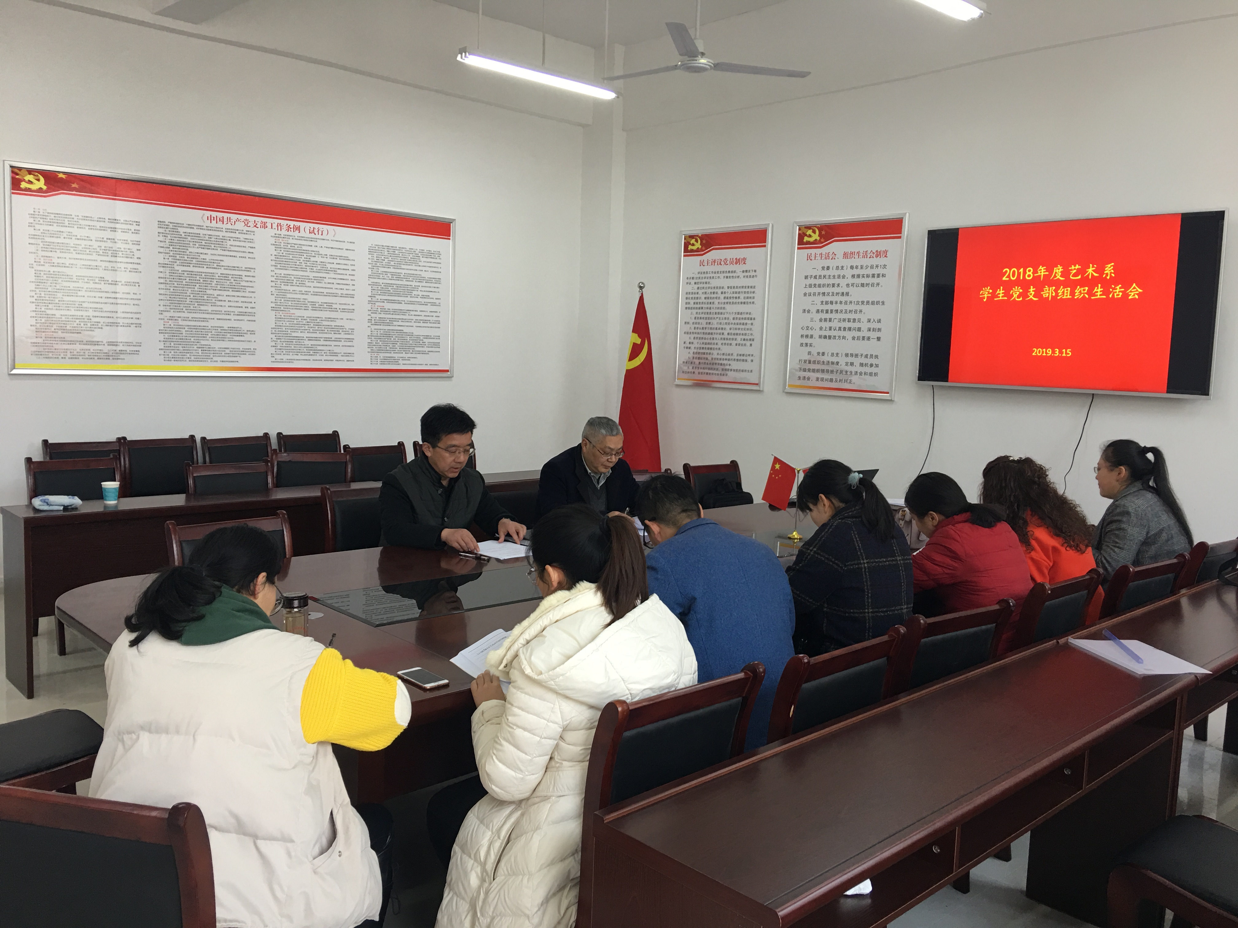 3月15日下午,艺术系学生党支部召开2018年度组织生活会,艺术系党总支副书记汪勇同志参加指导。会议由系党总支书记、学生党支部书记杨孝富(兼)主持。