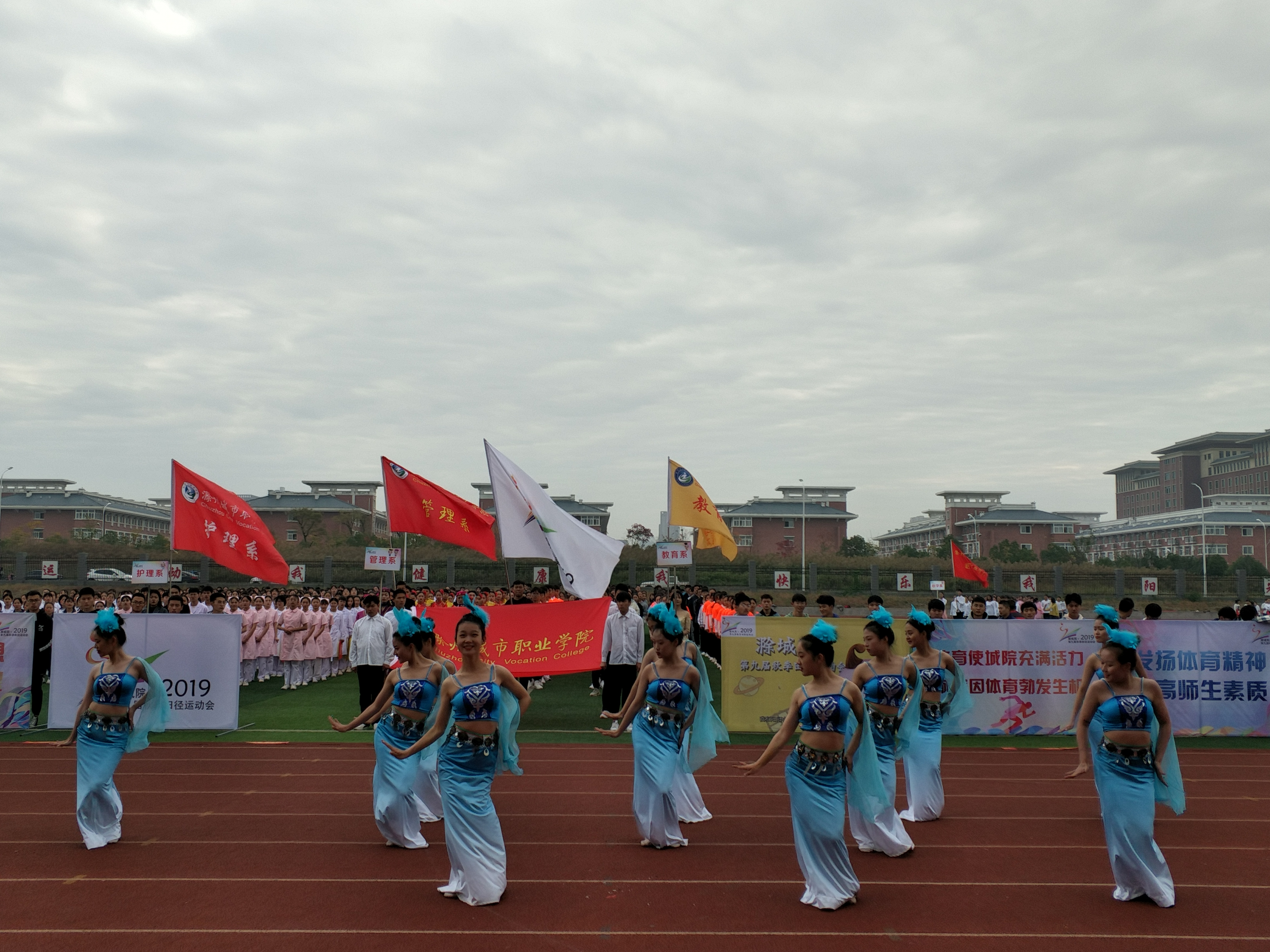 2019年9月23日上午,学校第九届田径运动会在体育场隆重举行。为了积极参加此次运动会,展现艺术系大学生风采,我系同学们会前认真排练开幕式表演节目。由运动员和表演队组成的艺术系方阵成员身着统一的服装,迈着整齐的步伐,带着昂扬的气势走来,主席台前他们个个精神饱满,朝气蓬勃,展现了艺术系的专业特色。