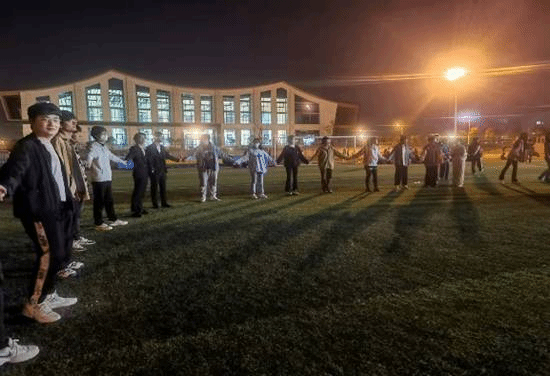 为了缓解大学生思想压力,丰富课外活动内容,2022年4月4日晚上,在学院体育场,艺术与传媒学院辅导员和班主任组织,带领学生开展了形式多样的课外集体活动。该活动意在帮助大家用平稳乐观的心态度过疫情防控的特殊时期,增进师生感情。