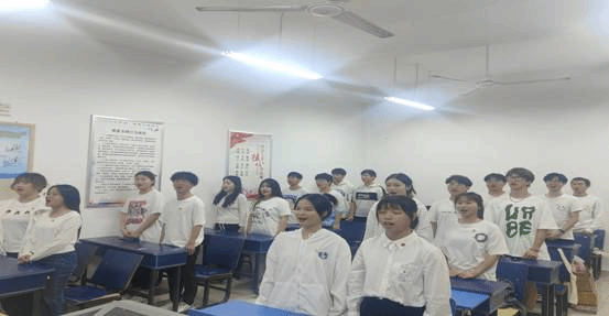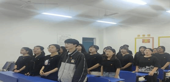 首先,各班团支部书记带领支部团员学唱团歌,团员们将团徽佩戴胸前,齐声高唱团歌《光荣啊,中国共青团》。“我们是五月的花海,用青春拥抱时代,我们是初升的太阳,用生命点燃未来……”。伴随着音乐,同学们激情澎湃、热情高涨、清脆响亮的歌声,回荡在学院每一个角落。