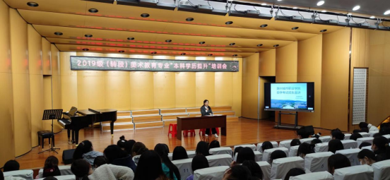 2022年10月26日下午,我院在音乐厅举行2019级(转段)美术教育专业“本科学历提升”培训会。会议由院长钱中宝主持,出席本次活动的有学校继续教育学院院长许梅、艺术与传媒学院党总支副书记汪勇、美术教育专业负责人刘晓玲老师。