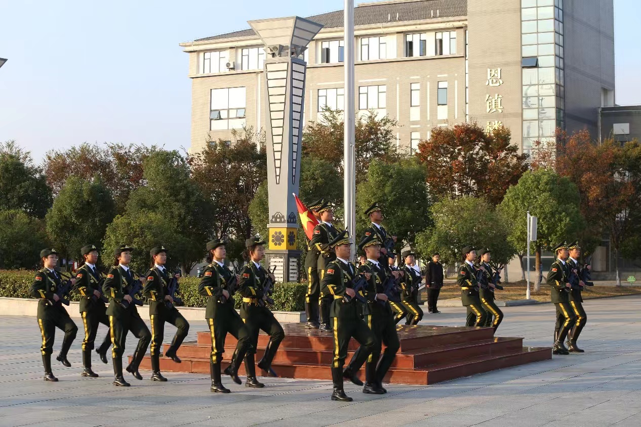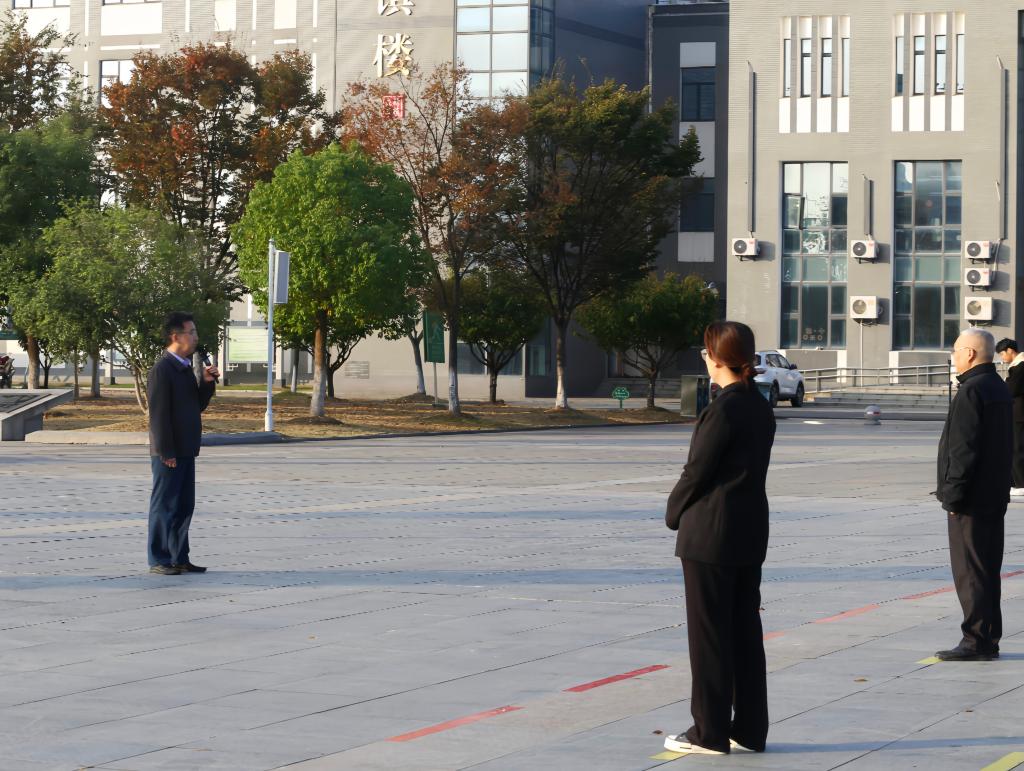 升国旗,奏国歌。英姿飒爽的国旗护卫队迈着矫健整齐的步伐,护送鲜艳的五星红旗入场。全体师生面向国旗肃立致礼,凝眸注视,共唱国歌,表达对伟大祖国的无限敬意和深深祝福。随着激昂的《义勇军进行曲》响起,国旗冉冉升起,在熠熠晨光中迎风飘扬。
