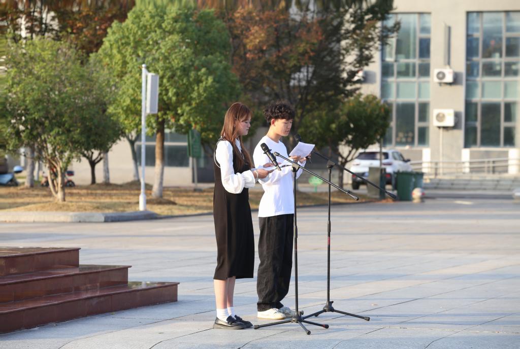 艺术与传媒学院22音乐教育二班乔继蕊和22美术教育二班李浩宇同学献上“生逢盛世勇向上,青春之火创辉煌”的朗诵,鼓舞我校青年应当锐意进取,自强不息,实干兴邦,为人民,为民族,为祖国,为人类的奉献中书写更加绚丽的人生篇章!