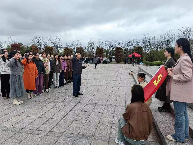 在镜园的烈士纪念碑前,全体同志整齐列队、肃立默哀向纪念碑三鞠躬,深切缅怀革命先烈。随后,全体党员在党总支书记杨孝富同志带领下,面向鲜红的党旗,重温入党誓词。先烈虽逝,但浩气长存。我们要铭记历史,缅怀先烈,化哀思为奋斗的力量,继承先烈不怕牺牲的革命精神,在教育教学的岗位上努力奋斗,为学校的高质量发展贡献一份力量。(文/图:方其琴,初审:贲蕾,复审:汪勇,终审:杨孝富)
