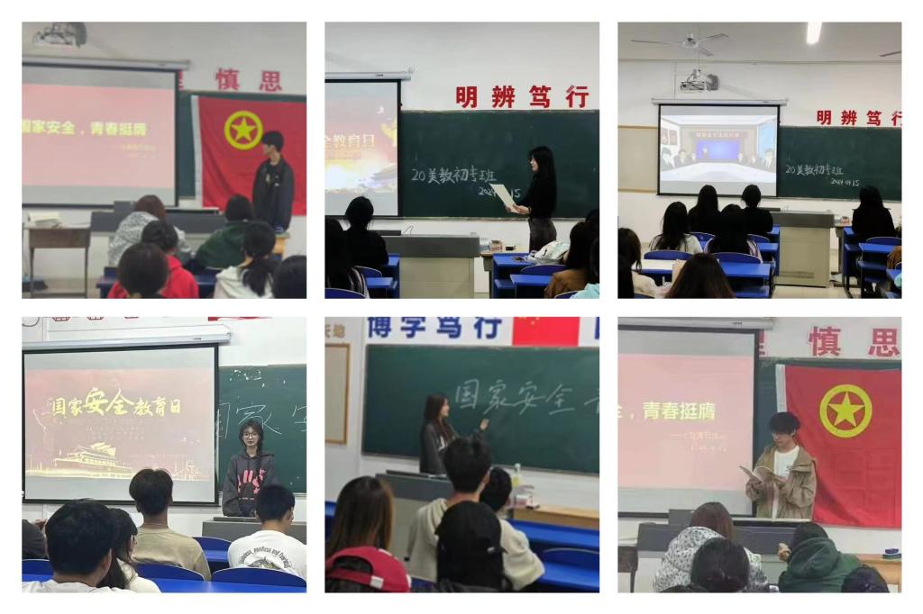 活动期间,各系以班级、团支部为单位,选取国家安全案例和知识主题,组织学生学习及开展讨论,使学生充分认识国家安全重要意义,切实提高国家安全意识。