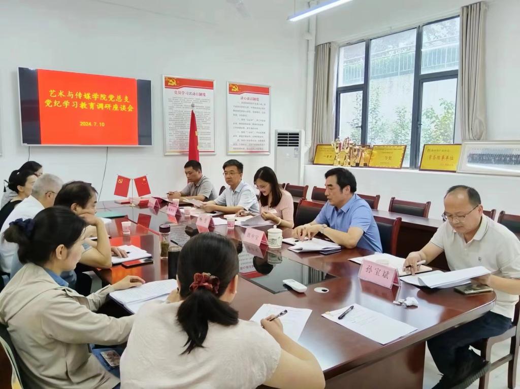 7月10日下午,校党委委员、组织人事处处长杨莹到艺术与传媒学院调研基层党纪学习教育开展情况。院党政班子成员、各党支部书记参加座谈会,会议由党总支书记杨孝富主持。