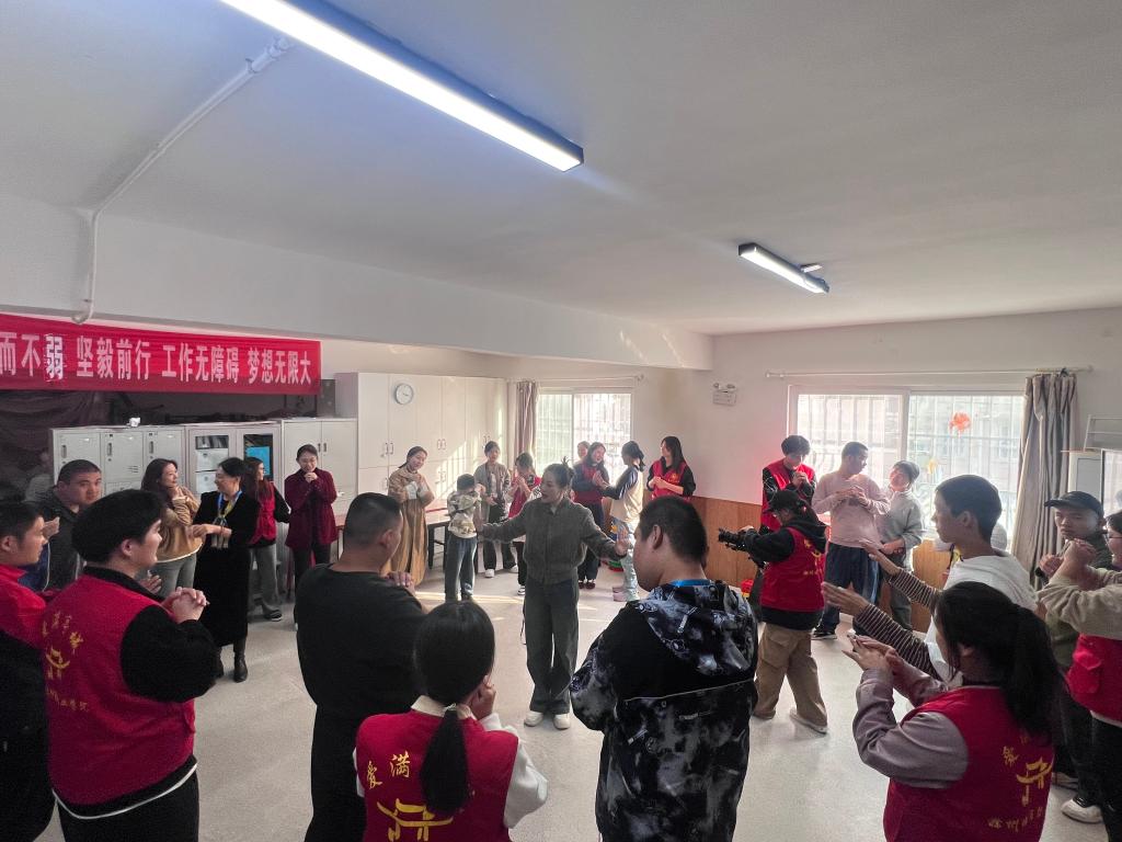 接着,在音乐舞蹈环节,由学院舞蹈专业老师带领,精心编排了适合自闭症少年的简单舞蹈动作,通过音乐和节奏引导,帮助孩子们感受舞蹈乐趣。在轻松愉快氛围中,孩子们跟随音乐舞动,体验了舞蹈带来的快乐和自由。