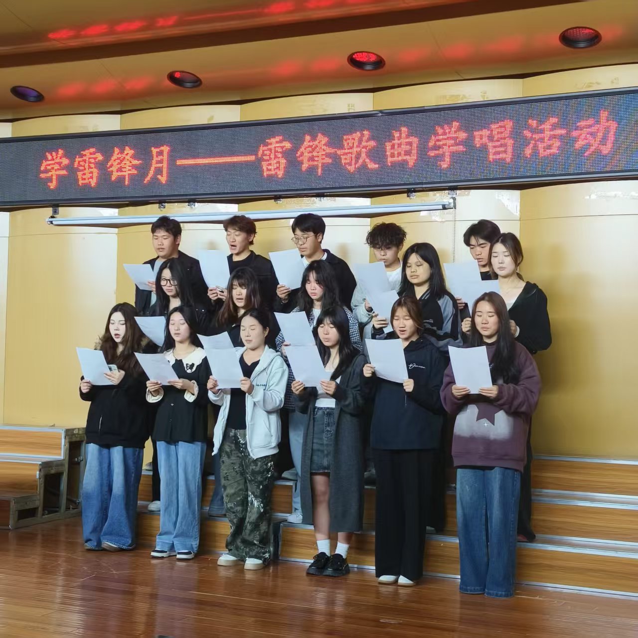 为大力弘扬雷锋精神,赓续红色血脉。近日,艺术与传媒学院音乐系团支部成功举办了“学雷锋月”雷锋歌曲学唱主题活动。本次活动以经典红歌为载体,通过合唱、表演等多种形式,旨在引导青少年深刻感悟雷锋精神的内涵,积极争做新时代的“雷锋式”好少年。