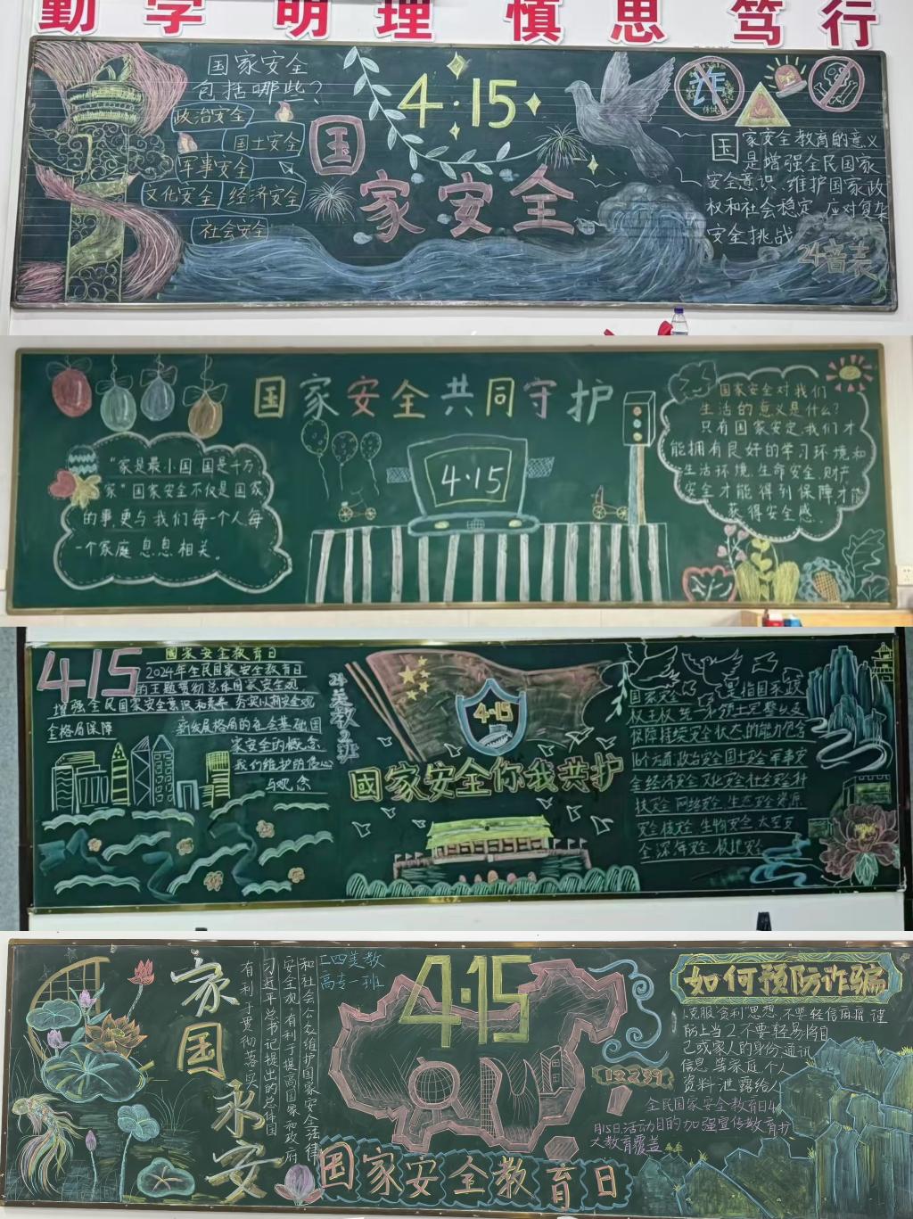 学院通过开展以“国家安全,人人有责”为主题的国家安全日主题班会;组织师生集中观看全民国家安全教育专题宣传片;利用宣传LED屏、校园网站、宣传海报等媒介,加大国家安全教育专题宣传;开展知识竞赛、朗读活动、创作国家安全主题黑板报等多种形式,增强师生们的国家安全意识,提升师生防范和应对安全风险的能力,筑牢了师生安全防线。