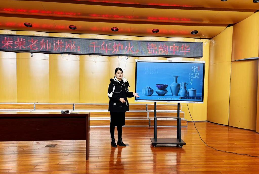 为弘扬中华传统制瓷文化,深入挖掘宋代陶瓷艺术精髓,艺术与传媒学院王荣荣老师于2025年12月10日在艺术与传媒学院音乐厅举办题为《千年炉火·瓷韵中华》的专题讲座。